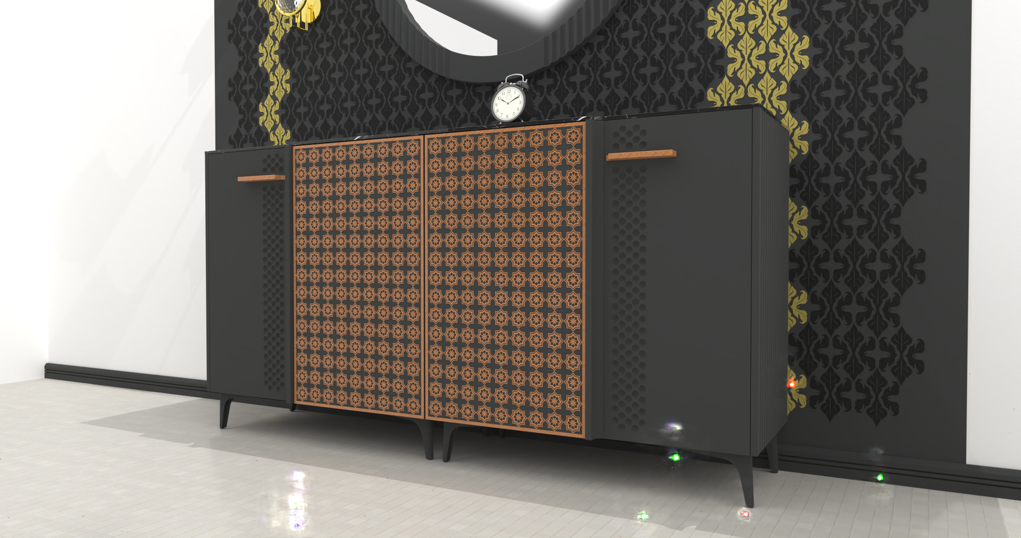 Táto luxusná obývačková zostava fundovaného zákazníka zaiste očarí. Nenájdete na nej nič štandardné alebo typizované. Úplne vybočuje z radu bežne dostupných typov nábytku z reťazcov a dokonca aj z profesionálnych stolárstiev, kde si takéto niečo vôbec nedokážete zabezpečiť kvôli náročnosti výroby a nutného technologického vybavenia. Každý prvok, na ktorý sa pozriete, je úplne na mieru.